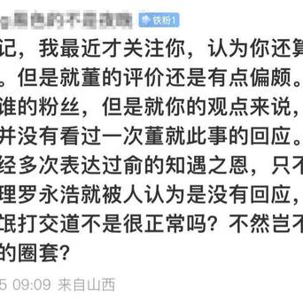 至于董对罗永浩的态度,更充分佐证了上述鉴茶的科学性。